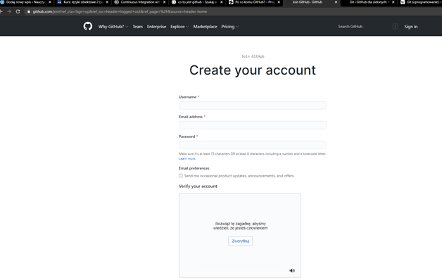 Tworzenie konta na GitHub